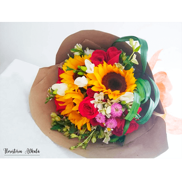 El Bouquet Diverso combina la elegancia de las rosas con la luminosidad y energía de los girasoles, creando un arreglo floral vibrante y diverso. Cada rosa y girasol se complementa a la perfección, transmitiendo alegría y positividad. Este bouquet es ideal para regalar en ocasiones especiales y hacer que la persona se sienta única y especial. Deja que el Bouquet Diverso de Floristería Alkalá ilumine cualquier momento con su belleza radiante.